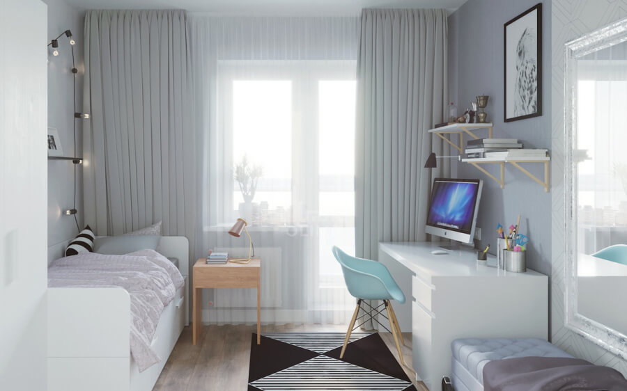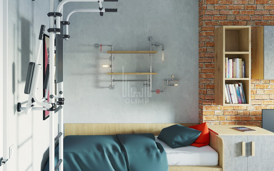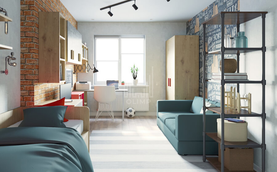 Футуристичный оттенок в спальне придают светильники и силуэты мебели, комната для сына решена в стиле лофт, для дочери скандинавский образ придает мебель из IKEA, в смешанном современном стилевом направлении общая зона и ванная, гостевой санузел с оттенками лофт стиля.