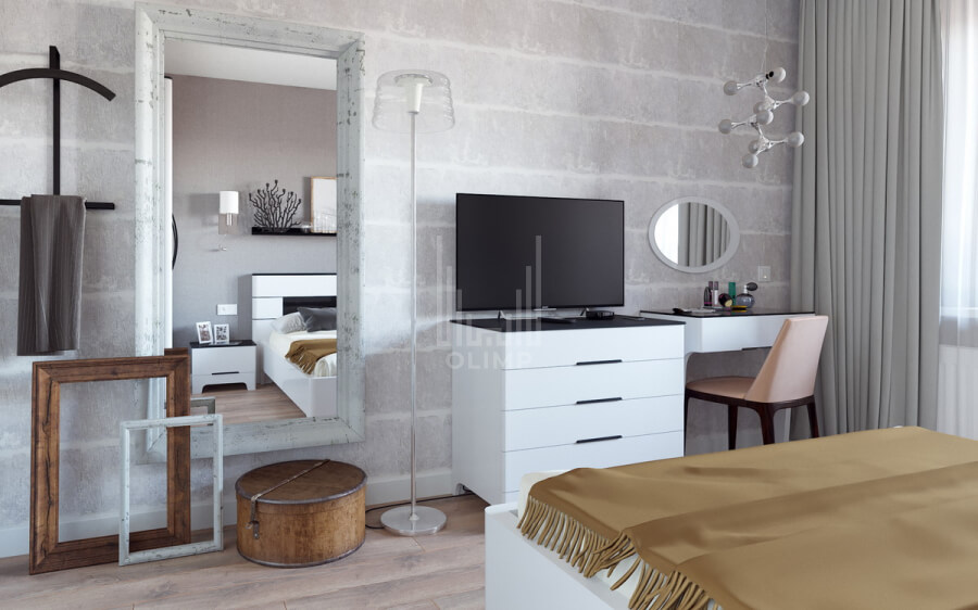 Во-первых, перед нами стояла задача в кротчайшие сроки разработать полный дизайн-проект, включая 3D визуализацию, а также подобрать качественную и недорогую мебель, сантехнику, бытовую технику и отделочные материалы, которые должны были быть в наличии на складах в Минске, а на заказные позиции срок был не более 1 месяца.